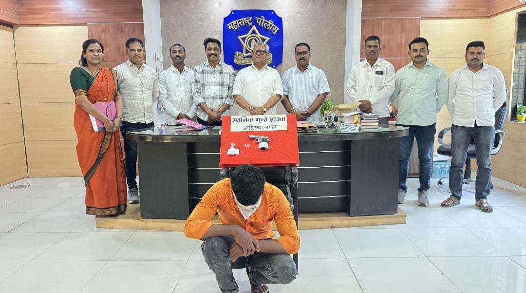 दिनांक 26/03/2026 रोजी नमुद पथक हे सोनई पोलीस ठाणे हद्दीमध्ये अवैध शस्त्रे बाळगणारे इसमांची माहिती काढत असतांना पथकास गुप्त बातमीदारामार्फत इसम नामे अमोल रावसाहेब विटनोर रा. मांजरी ता. राहुरी हा सोनई ते खेडले परमानंद जाणारे रोडवर श्रीरामवाडी परिसरात कॅनलवर त्याचे कब्जात विनापरवाना अग्निशस्त्र बाळगुन थांबलेला असल्याची माहिती प्राप्त झाली. त्यानुसार पथकाने बातमीतील ठिकाणी सोनई ते खेडले परमानंद जाणारे रोडवर श्रीरामवाडी परिसरात जावुन खात्री करता एक इसम कॅनलवर संशयीरित्या बसलेला दिसुन आला. सदर इसमास ताब्यात घेवुन त्यास त्याचे नांव पत्ता विचारले असता त्याने त्याचे नांव अमोल रावसाहेब विटनोर वय-27 वर्षे, रा. मांजरी ता. राहुरी जि. अहिल्यानगर असे असल्याचे कळविले. सदर इसमाची झडती घेतली असता त्याचे कमरेला 1) 30,000/- रुपये किमतीचे एक गावठी पिस्टल (अग्निशस्त्र), 2000/-रु कि. चे दोन जिवंत काडतुसे, असा एकुण 32,000/- रुपये किमतीचा मुद्देमाल मिळुन आल्याने जप्त करण्यात आला आहे.