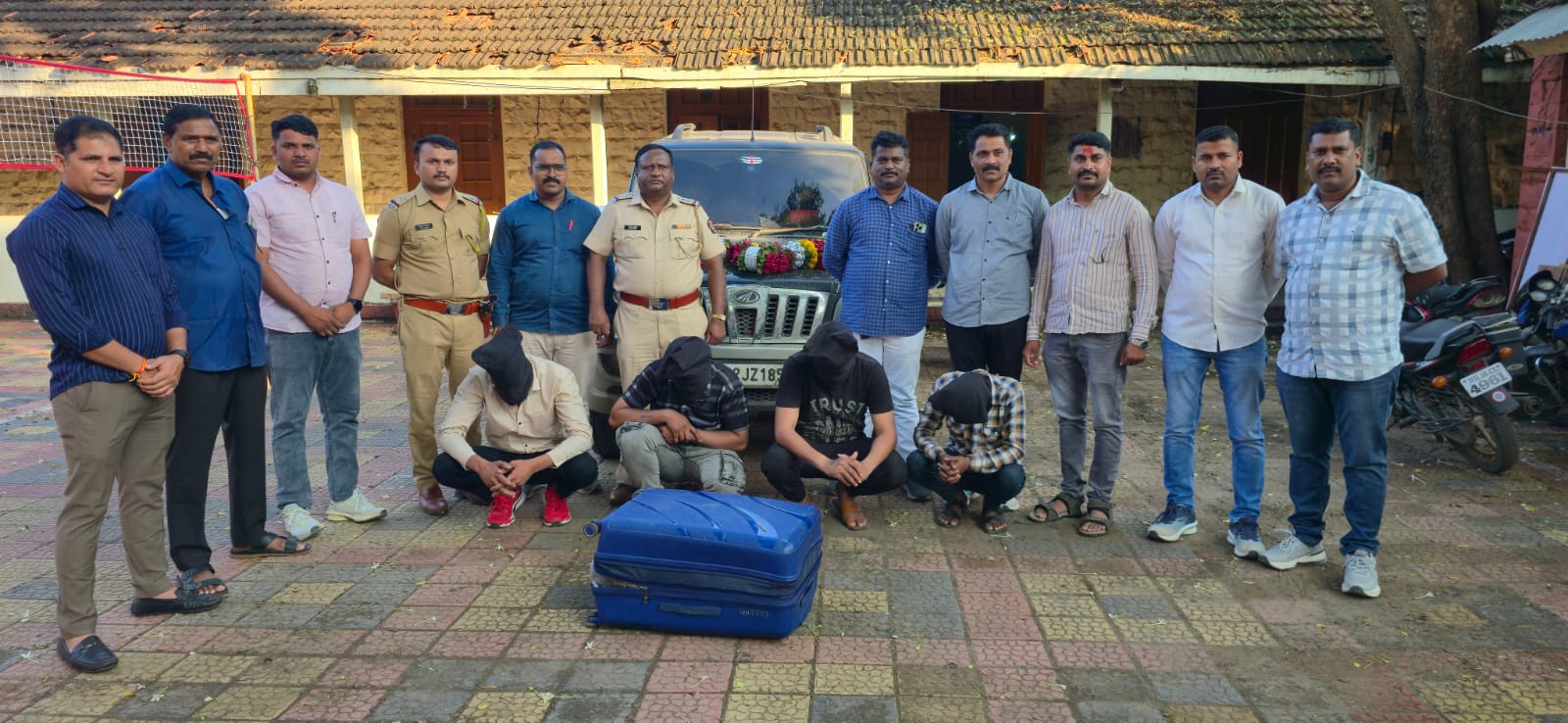 अंमली पदार्थ विरोधी टास्क फोर्सचे नोडल अधिकारी तथा स्थानिक गुन्हे शाखेचे पोनि.किरणकुमार कबाडी यांनी शेवगांव उपविभाग हद्दीतील अंमली पदार्थ विक्री व सेवन करणाऱ्या इसमांची माहिती काढुन कारवाई करणेबाबत पोउपनि अनंत सालगुडे, पोहेकॉ अतुल लोटके, पोहेकॉ संतोष खैरे, पोना बाळासाहेब नागरगोजे, पोना सोमनाथ झांबरे, पोकॉ किशोर शिरसाठ यांना रवाना केले. सदर पथक हे पाथर्डी पो.ठाणे हद्दीत अंमलीपदार्थाबाबत माहिती घेत असतांना, पथकास माहिती मिळाली की, 1) सतिष सुरेश डोळस रा. मावळ, पुणे, 2) राकेश सुदाम वाळुंज रा. मावळ, ता. पुणे, 3) आकाश देविदास जंगम रा. कामशेत, पुणे, 4) सतिष कृष्णकुमार बिडलांग रा. कारला, मावळ, पुणे हे त्यांच्याकडील काळ्या रंगाच्या स्कॉर्पीओ गाडी क्रमांक एम.एच. 12 जे. झेड 1854 ही मधुन सुरज आसराजी छाजेड रा. बालमटाकळी, शेवगांव याच्याकडुन अंमली पदार्थ गांजा खरेदी करुन विक्री करिता शेवगांव येथुन पाथर्डी मार्गे पुणे परिसरामध्ये जाणार आहेत. त्यावेळी सदर माहिती पोनि कबाडी यांना कळविली असता त्यांनी पाथर्डी पोलीस स्टेशनचे पोलीस अधिकारी व अंमलदार यांच्या मदतीने कारवाई करण्याबाबत सुचना दिल्या. त्यानुसार पथकाने तात्काळ पाथर्डी पोलीस ठाणे येथे येवुन पोनि श्री पुजारी यांना मिळालेल्या बातमीचा रिपोर्ट दिला त्यांनुसार पोउपनि महादेव गुट्टे, पोकॉ इजाज महेबुब सय्यद, पोहेकॉ अल्ताफ अहमद शेख यांच्यासह माळी बाभुळगांव फाटा या ठिकाणी सापळा रचुन स्कॉर्पीओ गाडी ताब्यात घेतली. या स्कॉर्पीओमधील सतिष सुरेश डोळस (वय 27 वर्षे, रा. कान्हेफाटा, इकोव्हॅली सोसायटी, सी 505, मावळ, ता. मावळ, जि. पुणे), राकेश सुदाम वाळुंज (वय – 35 वर्षे, रा. इंद्रायणी कॉलनी, कामशेत, ता. मावळ, जि. पुणे), आकाश देविदास जंगम (वय – 29 वर्षे, रा. कामशेत, ता. मावळ, जि. पुणे), सतिष कृष्णकुमार बिडलांग (वय – 33 वर्षे, रा. कारला, ता. मावळ. जि. पुणे ) यांची झडती घेतली. स्कॉर्पीओ गाडीच्या पाठीमागील डिकीमध्ये ट्रॅव्हल बॅग मिळुन आली. सदर बॅग उघडुन पाहाता आतमध्ये दोन मोठ्या प्लॅस्टीक पिशव्यामध्ये उग्र वास येत असलेला व मिश्रीत असलेला हिरवट रंगाचा पाला, फुले, बोंडे काड्या संलग्न असलेले कॅनबिस वनस्पतीचे शेंडे (अंमली पदार्थ गांजा) मिळुन आला. विचारणा केली असता, इसम नामे सतिष सुरेश डोळस यांने तो गांजा हा अंमली पदार्थ असल्याचे सांगुन तो नशेसाठी वापरला जातो. सदरचा गांजा हा सुरज आसराजी छाजेड रा. बालमटाकळी, शेवगांव, जि. अहिल्यानगर याच्याकडून खरेदी करुन विक्रीकरीता आणल्याची कबूली आरोपींनी दिल्यानंतर त्यांना ताब्यात घेवुन गांजासह 13,70,500 रुपये किमंतीचा मुद्देमाल हस्तगत करण्यात आला करण्यात आले आहे.