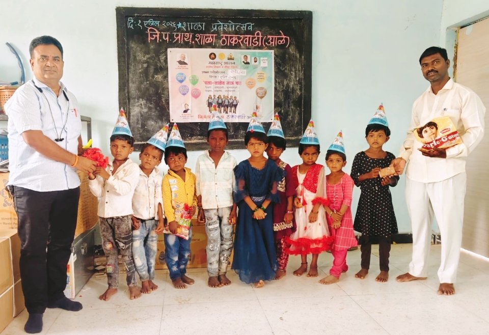 अहिल्यानगर : दुर्गम व डोंगराळ माथ्यावर स्थित ठाकरवाडी (आळे), तालुका राहुरी येथील जिल्हा परिषद शाळेमध्ये १ एप्रिल २०२६ रोजी दाखल पात्र मुलांपैकी पहिल्याच दिवशी सुमारे ७०% मुले इयत्ता पहिली मध्ये दाखल झाल्याची माहिती या शाळेचे मुख्याध्यापक राजेंद्र निमसे यांनी दिली .