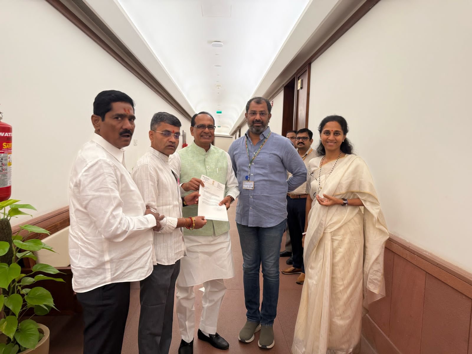 खा. लंके यांनी निवेदनात पुढे म्हटले आहे की, प्रधानमंत्री ग्रामसडक योजनेच्या चौथ्या टप्प्याची केंद्र सरकारकडून सन २०२४ मध्ये घोषणा करण्यात आली आहे. त्यामध्ये आदिवासी क्षेत्रातील २५० हून अधिक लोकसंख्या असलेल्या गावांना पक्क्या रस्त्याने जोडण्यासाठी प्राधान्य देण्यात आले आहे. त्याअनुषंगाने २५० पेक्षा अधिक लोकसंख्या असलेल्या गावांना पक्क्या रस्त्यांनी जोडण्यासंदर्भात मंजुरी देणे आवष्यक आहे. या मागणीवर लवकरात लवकर निर्णय घेउन या गावांची वाहतूक सुलभ करण्याची मागणी खा. लंके यांनी निवेदनात केली आहे. मंत्री चौहान यांच्या भेटीप्रसंगी खा. सुप्रिया सुळे यांच्यासह बीडचे खासदार बजरंग सोनवणे हे देखील उपस्थित होते.
