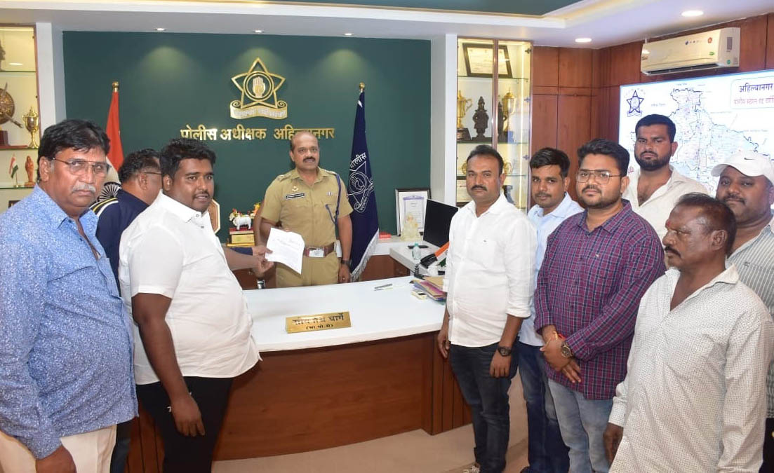 नगर शहरातील घोडेपीर दर्गा प्रकरणात यांचे नाव गुन्ह्यातून वगळण्याची मागणी,पोलीस अधीक्षकांना निवेदन