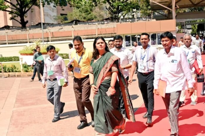 राज्य सरकारचे अर्थसंकल्पीय अधिवेशन सुरू असल्याने सध्या मुंबईत आमदार आणि मंत्रीमहोदयांची रेलचेल पाहायला मिळत आहेत. तर, मंत्रिमहोदयांकडून जिल्हाधिकारी व वरिष्ठ अधिकाऱ्यांच्या बैठका घेऊन अनेक कामे मार्गी लावण्याचंही काम केलं जातंय. पर्यावरणमंत्री पंकजा मुंडे यांनीही वरिष्ठ अधिकाऱ्यांची बैठक बोलावली होती. मात्र, पंकजा मुंडेंच्या आदेशानंतरही आयएएस अधिकारी एम. देवेंद्र सिंग हे ब्रीफिंगसाठी न आल्याने अखेर त्यांचं निलंबन करण्यात आलं आहे. याप्रकरणी, तालिका अध्यक्ष दिलीप लांडे यांनी निलंबनाचे आदेश दिले होते. त्यानुसार, सामान्य प्रशासन विभागाकडून त्यांच्यावर ही कारवाई करण्यात आली.