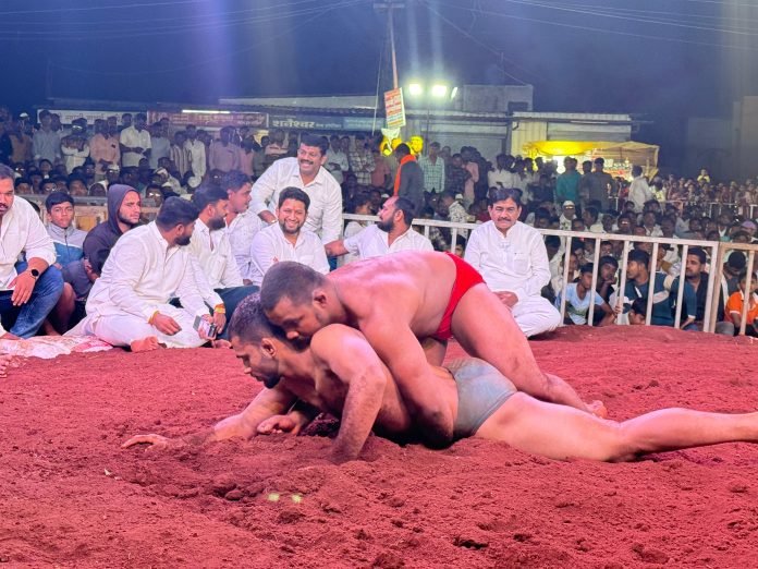 अहिल्यानगर – हिंदुत्व युवा प्रतिष्ठान यांच्या वतीने अहिल्यानगर जिल्ह्यातील नालेगाव येथे आयोजित भव्य जंगी निकाली कुस्ती स्पर्धा मोठ्या उत्साहात पार पडली. या स्पर्धेला डॉ. सुजय विखे पाटील यांनी भेट देवून मल्लांचा उत्साह वाढवत आखाड्यात बसून कुस्तीचा थरार अनुभवला.