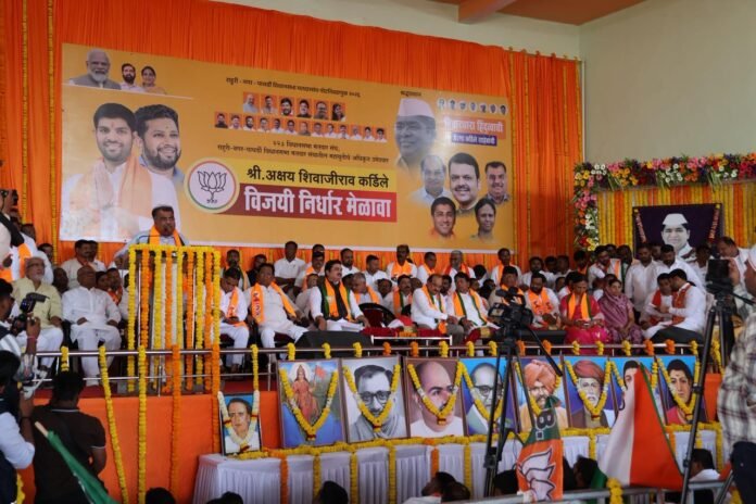 राहुरी पाथर्डी नगर विधानसभा पोटनिवडणुकीसाठी भाजप महायुतीचा विजय निर्धार मेळावा उत्साहात संपन्न