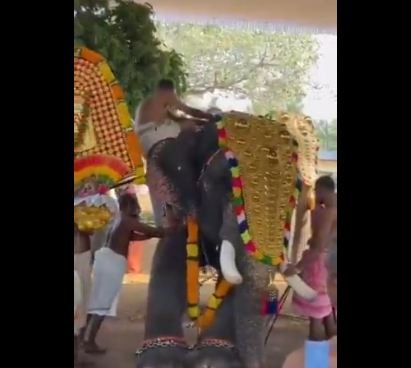 ही घटना केरळमधील अन्नमानंद महादेव मंदिर येथे घडली. उत्सवासाठी मोठी गर्दी जमली होती. मिरवणुकीची तयारी सुरू असताना हत्ती शांतपणे उभा असल्याचे व्हिडीओत दिसते. एका व्यक्तीने हत्तीच्या पाठीवर चढण्याचा प्रयत्न केला, तर दुसरा ‘थिडंबू’ — देवतेची अलंकारिक प्रतिकृती — हातात घेऊन जवळ उभा होता. अचानक हत्तीने तरुणाच्या पायांना सोंडेने पकडले, काही अंतर ओढले आणि नंतर जोरात फेकून दिले.
