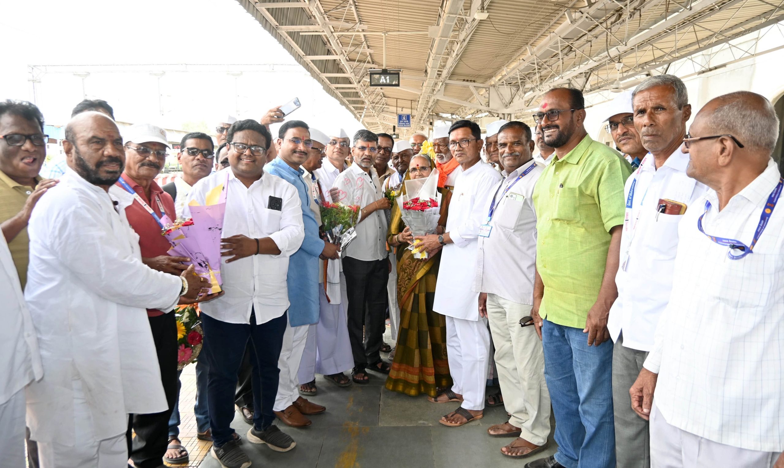 शहरातील रेल्वे स्थानकावर खासदार निलेश लंके यांच्यासह सेवानिवृत्त शिक्षक द.मा. ठुबे, बन्सी उबाळे, ज्ञानदेव लंके, विनायक कोल्हे, अशोकराव बागुल, महादेव गांगर्डे, सूर्यभान काळे, किशोर हार्दे, अशोक धसाळ, दत्तात्रय गावडे, गजानन ढवळे, प्रदीप खिलारी, पोपट इथापे, नन्नवरे, बाळासाहेब लगड, अशोक गायकवाड, रावसाहेब पवार, विनीत कोल्हे, अनिल नलगे, मोहन पवार आदींसह सर्व तालुका अध्यक्ष, तालुकाप्रमुख यांच्यासह सेवानिवृत्त शिक्षक बांधव मोठ्या संख्येने उपस्थित होते.