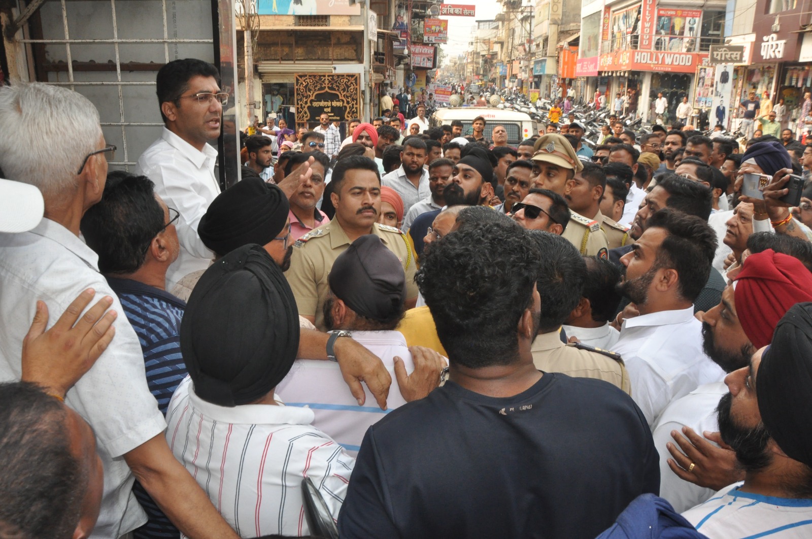 (चौकट) कापड बाजारातील व्यापाऱ्याच्या मुलीला मारहाण करणाऱ्यावर पोलिसांनी थातूर-मातूर कारवाई केली असल्यामुळे त्यांना लगेच जामीन झाला आहे. मात्र त्यांनी जर दहशत माजविण्याची कृती केल्यास त्यांना धडा शिकवला जाईल. कापड बाजार परिसर हातगाडी मुक्त केला जाईल, जिल्हाभरातून ग्राहक खरेदीसाठी कापड बाजार मध्ये येत असतात, त्यांच्या संरक्षणाची जबाबदारी आमची आहे. दुकानांसमोर हातगाड्याचे अतिक्रमण केले जाते तरी दुकानदारांना आमची विनंती आहे की गाड्या लावू देऊ नका आपल्यामध्ये एकमत असू द्या असे मत आमदार संग्राम जगताप यांनी व्यक्त केले.