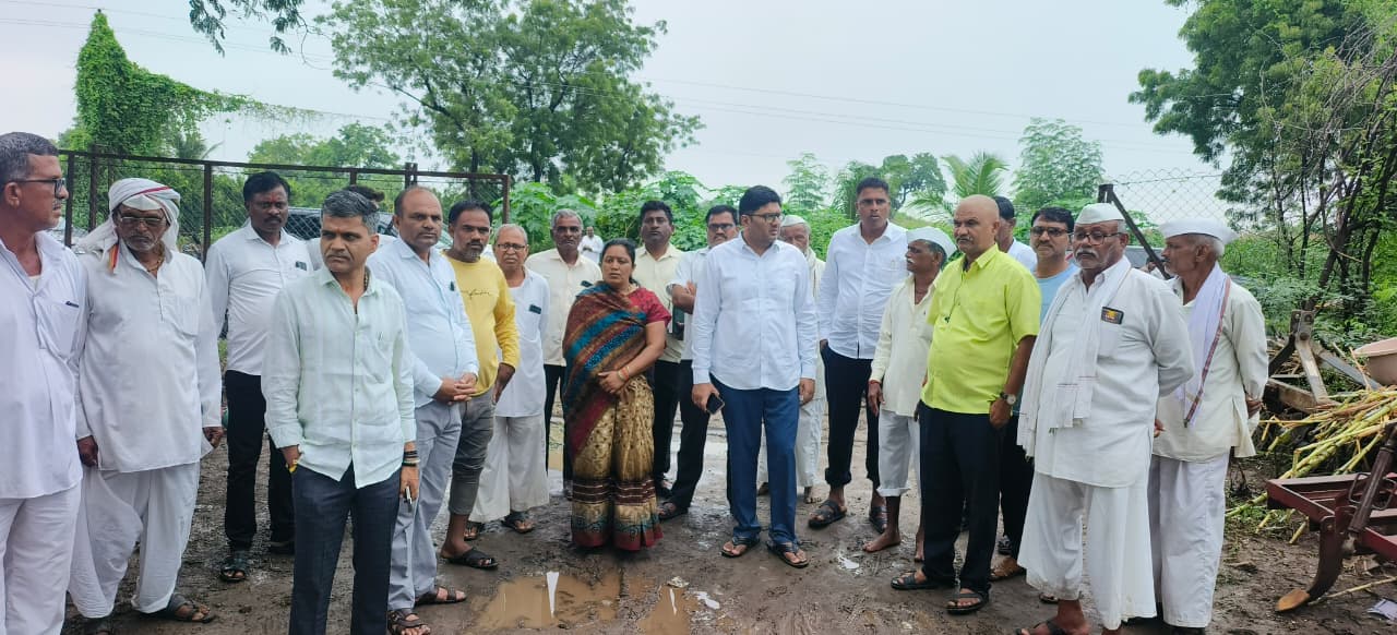 अतिवृष्टीग्रस्त भागाची खा. लंके, मा. मंत्री तनपुरे यांनी केली पाहणी