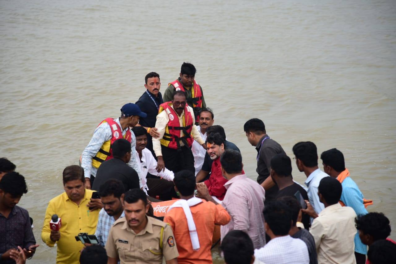 बीडसह राज्यातील बहुतांशी जिल्ह्यांमध्ये मुसळधार पाऊस कोसळत आहे. परळी तालुक्यातील पोहनेर गावाला पाण्याने वेढा घातला आहे. अशातच माजी मंत्री धनंजय मुंडे यांनी होडीतून प्रवास करत गावकऱ्यांच्या समस्या जाणून घेतल्या. परळी तालुक्यातील पोहनेर गावाला पाण्याने वेडा घातला आहे यामुळे अनेक गावांचा संपर्क तुटला असून अनेक नागरिकांच्या घरात पाणी शिरले असून जनजीवन विस्कळीत झाले आहे.आज माजी मंत्री धनंजय मुंडे यांनी होडीमध्ये बसून गावकऱ्यांशी संवाद साधला, सरकार तुमच्या पाठीशी आहे काळजी करू नका प्रशासनाला मी आदेश दिले आहेत, असा धीर धनंजय मुंडे यांनी गावकऱ्यांना दिला.यावेळी धनंजय मुंडे म्हणाले की, ‘पोहनेर हे फार मोठं गाव आहे. या सगळ्या गावांना अडचणींचा सामना करावा लागत आहे. जीवितहानी सारखी कुठलीही घटना नाही. पण लाईट नाहीये, खायला काही नाहीये.’पुढे बोलताना धनंजय मुंडे म्हणाले की, आता शेतकऱ्यांची परिस्थिती खूप अवघड झाली आहे, कारण कुठलंच पीक त्यांच्या हाती लागलेले नाही. या भागामध्ये ऊस आहे. मात्र पूर्ण ऊस पाण्याखाली गेला आहे. सांगली साताऱ्याला जशी ऊसाला मदत दिली जाते, त्याच पद्धतीने आमच्या शेतकऱ्यांना मदत द्यावी यासाठी मी प्रयत्न करणार आहे.अनेक घरे, दुकाने पाण्याखाली गेली आहेत. या सर्वांना योग्य ती मदत दिली गेली पाहिजे. ज्यावेळी निसर्ग कोपतो त्यावेळी सर्वात अगोदर बळी शेतकऱ्याचा जातो. मी मदतीसाठी मुख्यमंत्र्यांशी बोलणार आहे