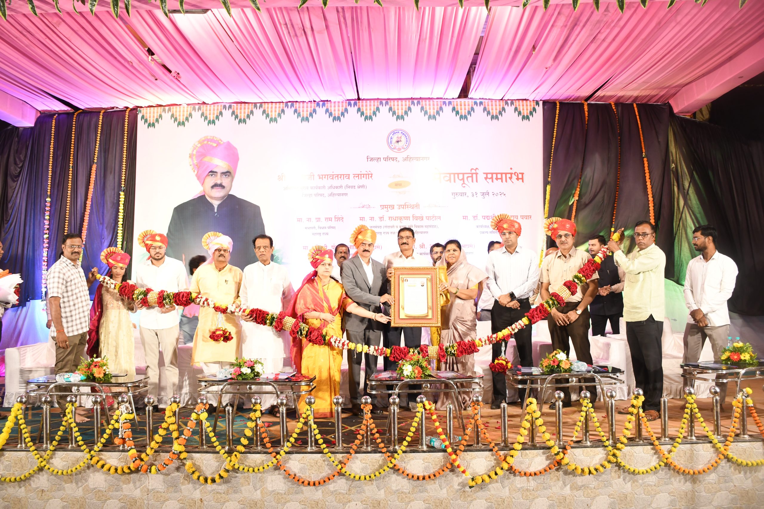 अहिल्यानगर जिल्हा परिषदेचे अतिरिक्त मुख्य कार्यकारी अधिकारी संभाजीराव लांगोरे 33 वर्षांच्या प्रदीर्घ सेवेनंतर सेवानिवृत्त झाले. त्यांचा सेवापूर्ती सत्कार सोहळ्यावेळी प्रमुख पाहुणे म्हणून पवार बोलत होते. संभाजीराव लांगोरे यांचा सौ.शैलजा लांगोरे यांचा सत्कार करण्यात आला. यावेळी जिल्हा परिषदेचय माजी अध्यक्षा शालिनीताई विखे पाटील, जिल्हाधिकारी डॉ.पंकज आशिया, जि.प.चे मुख्य कार्यकारी अधिकारी आनंद भंडारी, माजी आ.दादाभाऊ कळमकर, माजी जि.प.सदस्य सचिन जगताप, नागवडे सहकारी साखर कारखान्याचे चअरमन राजेंद्र नागवडे, सुभाष शिंदे यांच्यासह जिल्हा परिषदेचे खातेप्रमुख, अधिकारी, कर्मचारी तसेच लांगोरे यांचे कुटुंबिय, नातेवाईक, मित्र परिवार उपस्थित होता.