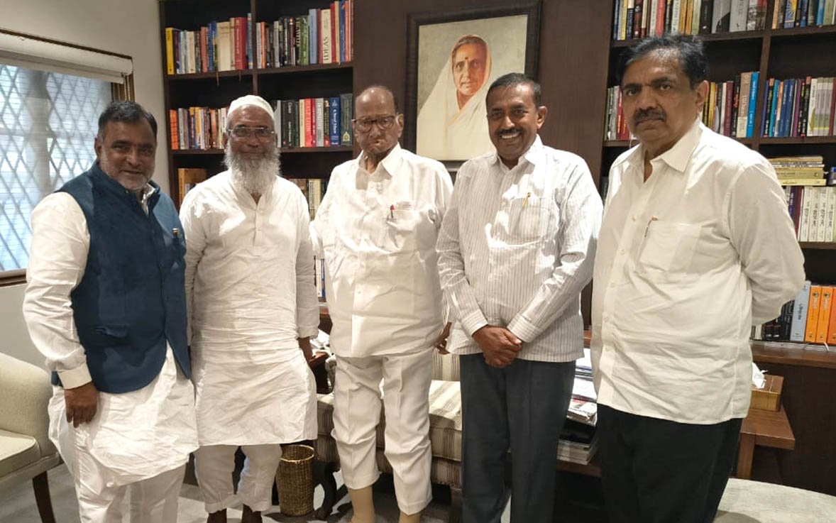 अहिल्यानगर (प्रतिनिधी)- दिनांक १८ डिसेंबर २०२५ रोजी मुंबई येथील सिल्वर ओक या निवासस्थानी राष्ट्रवादी काँग्रेस (शरदचंद्र पवार) पक्षाचे राष्ट्रीय अध्यक्ष खासदार शरदचंद्रजी पवार साहेब यांची छत्रपती संभाजीनगर व अहिल्यानगर महानगरपालिका निवडणुकांच्या पार्श्वभूमीवर महत्त्वपूर्ण बैठक पार पडली. या बैठकीस छत्रपती संभाजीनगर महानगरपालिकेचे निरीक्षक व प्रांत उपाध्यक्ष हाजी शौकतभाई तांबोळी, छत्रपती संभाजीनगर ग्रामीण जिल्हाध्यक्ष पांडुरंगराव तांगडे पाटील, तसेच पक्षाचे शहराध्यक्ष ख्वाजा शरपोद्दिन मुल्ला यांनी शरद पवार साहेबांची भेट घेतली. यावेळी पक्षाचे माजी प्रांताध्यक्ष व माजी मंत्री जयंतराव पाटील साहेब उपस्थित होते.