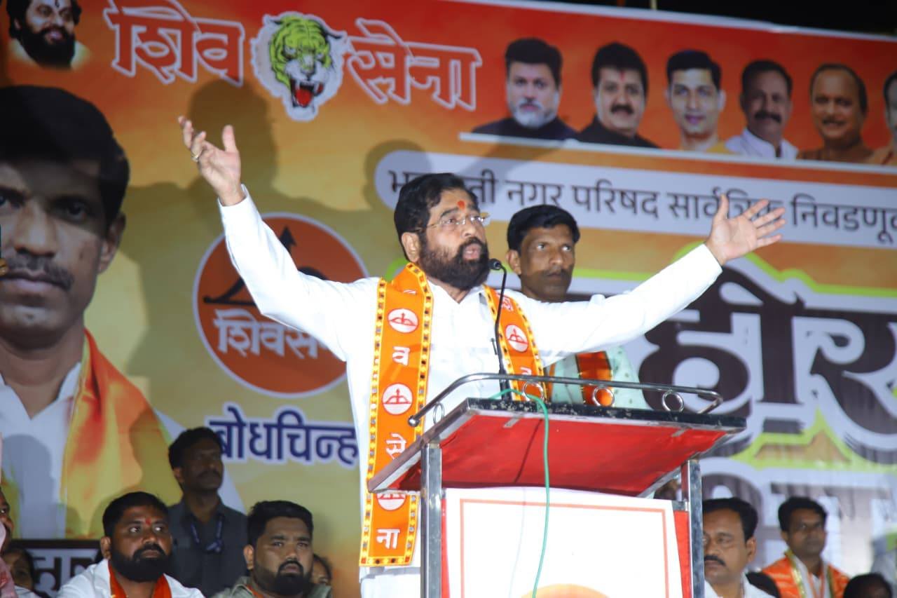 राज्यातील नगरपालिका आणि नगर परिषदेच्या प्रचाराला वेग आला आहे. सर्वच पक्षांचे प्रमुख नेते प्रचारात व्यस्त आहेत. शिवसेना नेते आणि राज्याचे पाणीपुरवठा मंत्री गुलाबराव पाटील आज प्रचारासाठी नाशिकमधील भगूर येथे आले होते. यावेळी बोलताना पाटील यांनी मतदारांना एक अजब सल्ला दिला आहे. विरोधकांच मटण खा आणि बटण आमचं दाबा असं पाटील यांनी म्हटले आहे.गुलाबराव पाटील यांनी भगूरमध्ये बोलताना म्हटले की, भगूर नगरपालिकेत करंजकरांनी खूप काम केलं आहे. विरोधक कितीही एकत्र झाले तरीही जनता प्रतिमा, कामाला पाहून मतदान करेल. ही निवडणूक शहर विकासाची आहे. आधी बायको नव्याऱ्याकडे पैसे मागायची आता नवरा बायको कडे पैसे मागतो. अर्ध्या रात्री रक्त देणारी माणसे तुमच्या समोर उभी केली आहेत त्यांना साथ द्या