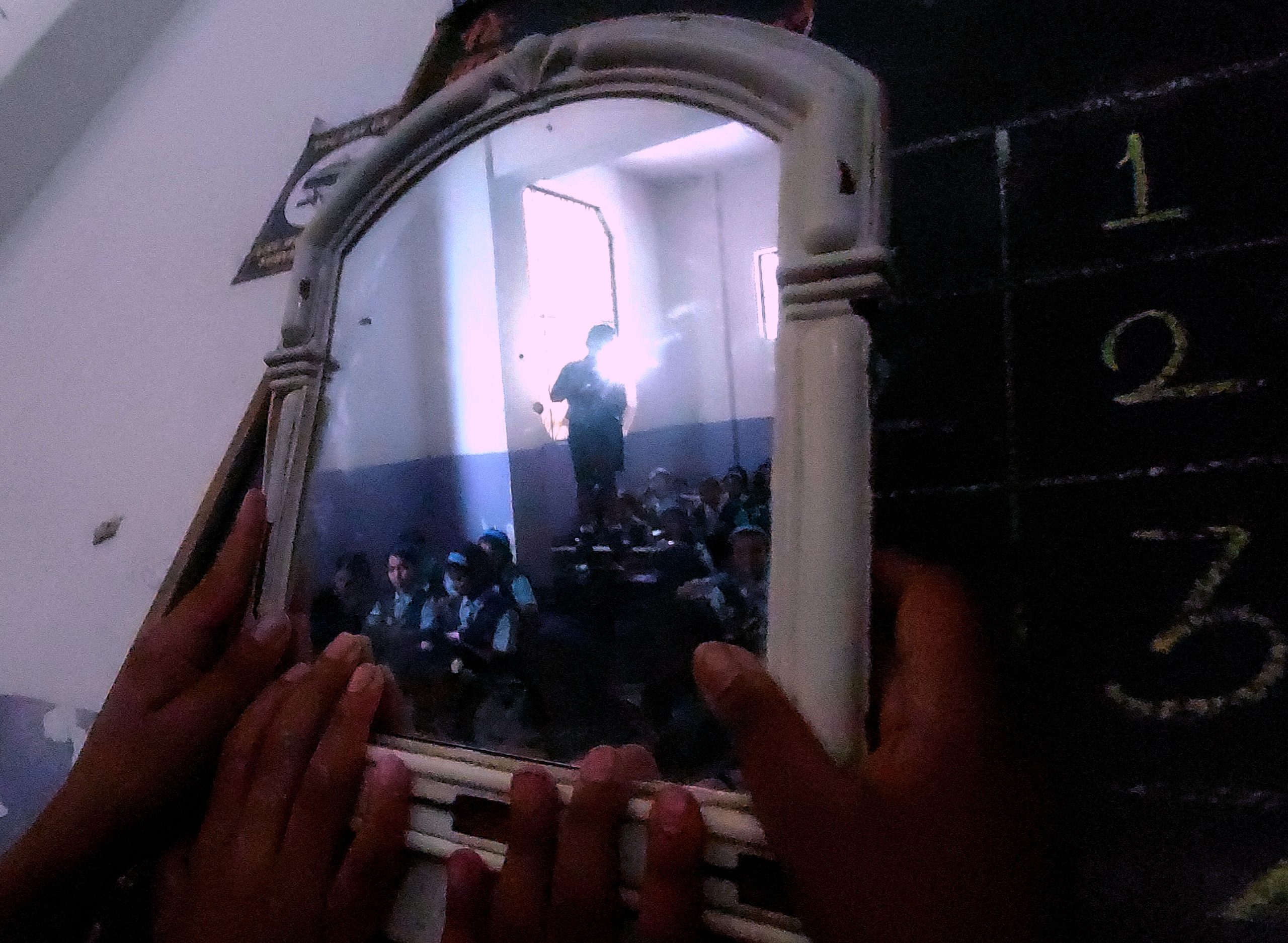 शिक्षकाने मोबाईल टॉर्च व आरशाच्या सहाय्याने अंधारल्या वर्गात आणला प्रकाश