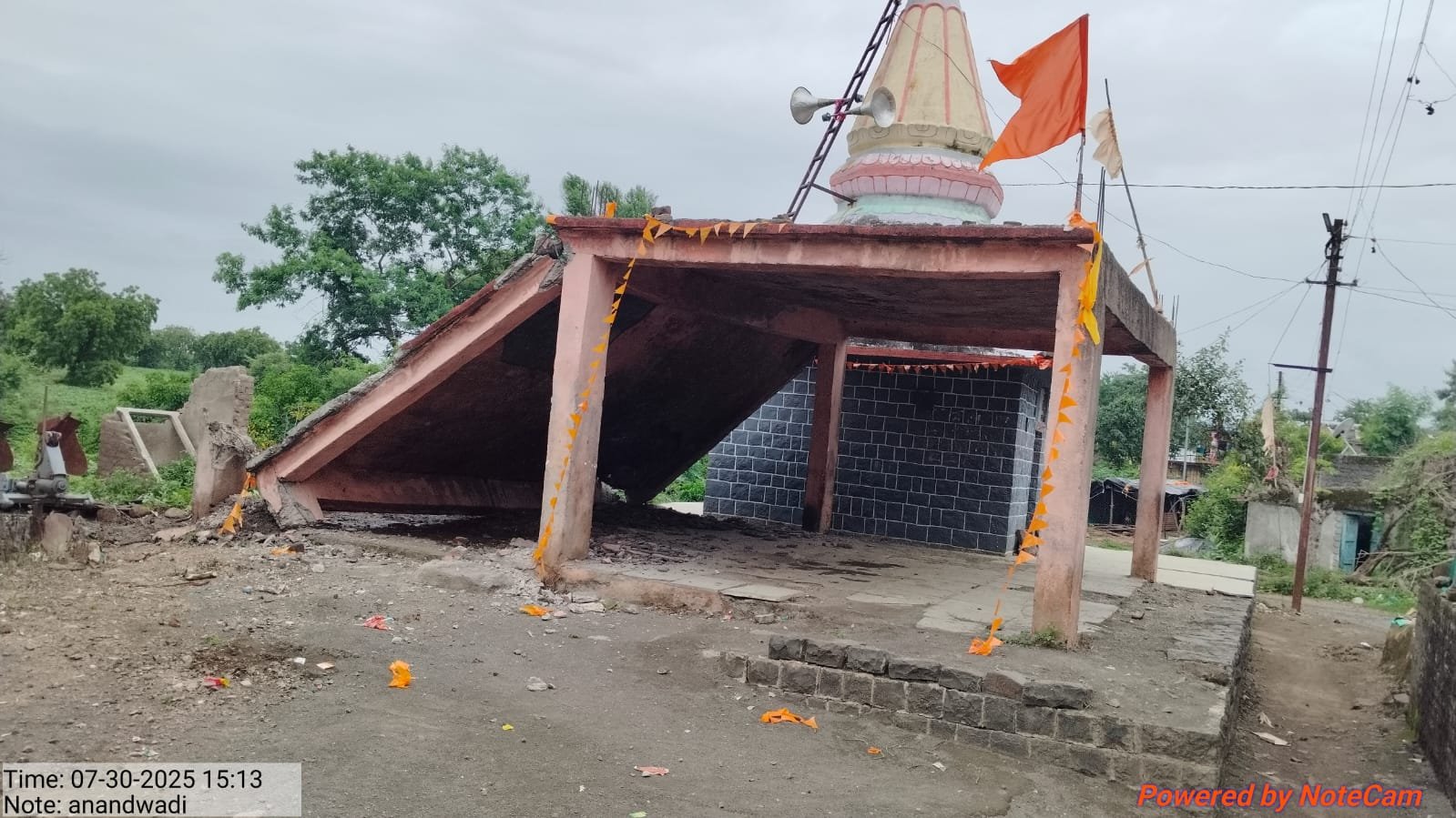 मौजे आनंदवाडी, ता. जामखेड, जि. अहिल्यानगर येथील ग्रामपंचायत आनंदवाडी येथील १० वर्षापुर्वी बांधलेला सभामंडप काल दिनांक ३० जुलै २०२५ रोजी दुपारी सुमारे ३.०० वा. कोसळला व भुईसपाट झाला. या सभामंडपात गावातील नागरीक व लहान मुले-मुली खेळत असतात. सुदैवाने कोणतीही जिवित हानी झालेली नाही.
