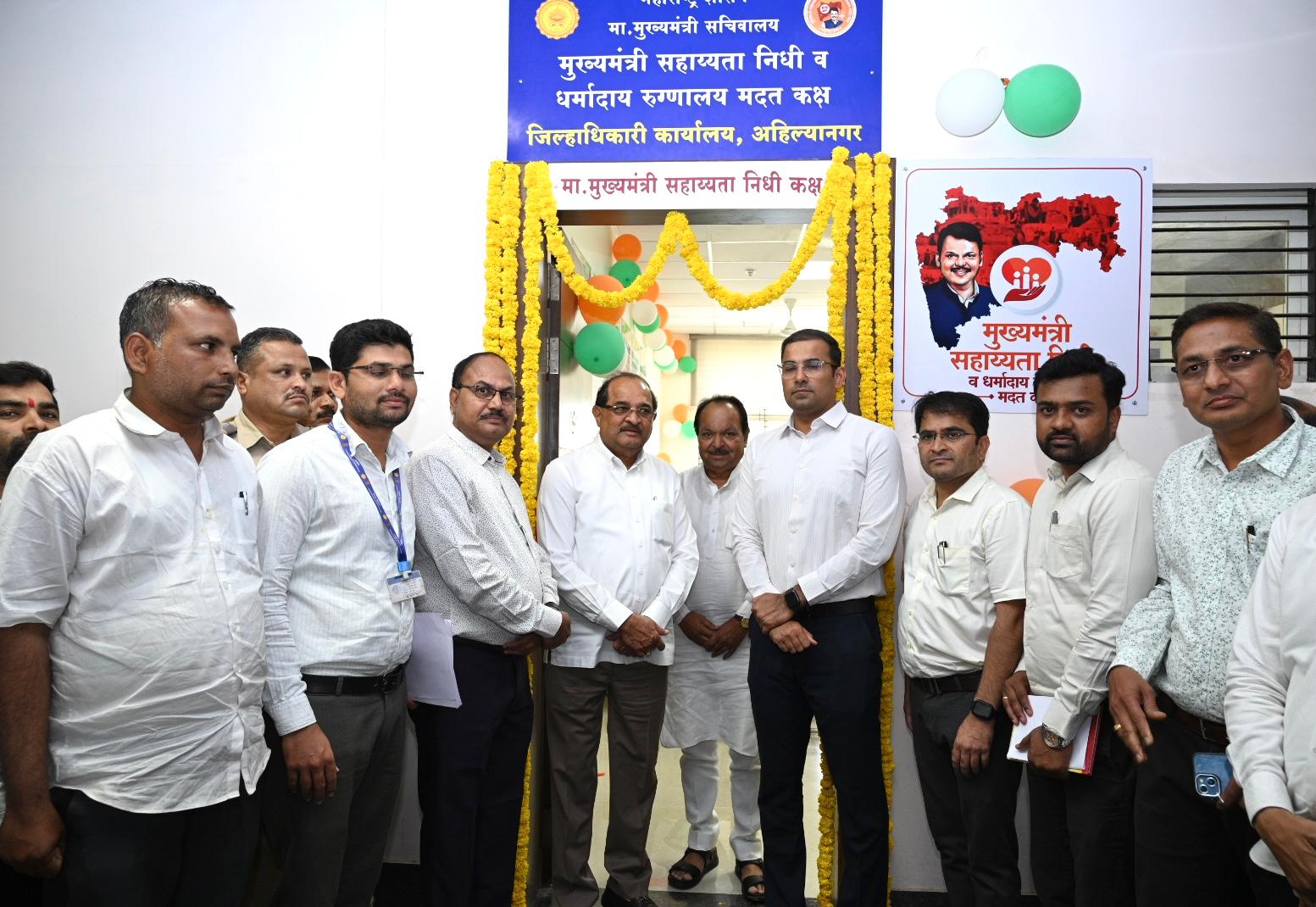 अहिल्यानगर, – मुख्यमंत्री सचिवालयाच्या मुख्यमंत्री सहाय्यता निधी व धर्मदाय रूग्णालय मदत केंद्राचे जलसंपदा मंत्री तथा पालकमंत्री राधाकृष्ण विखे पाटील यांच्याहस्ते जिल्हाधिकारी कार्यालयात आज उद्घाटन करण्यात आले. मुख्यमंत्री सहाय्यता निधीचा जास्तीत जास्त गरजू रुग्णांना लाभ देण्यासाठी या योजनेच्या माध्यमातून देण्यात येणाऱ्या सोयी-सुविधा व उपचारांची व्यापक प्रसिध्दी करण्यात यावी, अशा सूचना यावेळी पालकमंत्र्यांनी दिल्या.