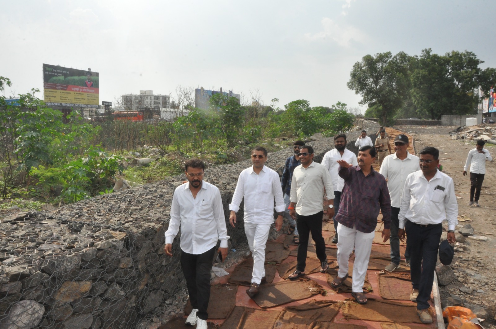 आमदार संग्राम जगताप यांच्या प्रयत्नातून सुरू असलेल्या सीना नदी सुशोभीकरण कामाची पाहणी संपन्न