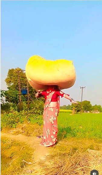व्हिडीओ चालू झाल्यानंतर पहिल्या क्षणात महिला अगदी साध्या ग्रामीण पेहरावात चालताना दिसते; पण जशी ती थांबते आणि नाचायला लागते, तसा संपूर्ण सीन बदलून जातो. तिच्या डोक्यावर प्रचंड वजन असतानाही ती इतक्या जोरात, एवढ्या स्टाईलने डान्स करते की, पाहणारे विसरून जातात की, ती काहीतरी जड उचलून चालली आहे.तिचा डान्स बघताना एक गोष्ट खास जाणवते आणि ती म्हणजे तिच्या चेहऱ्यावरचे हसू व आत्मविश्वास. तिच्या डोक्यावरील पोते जड असूनही तिचा तोल एकदाही ढळत नाही आणि तिच्या डोक्यावरील पोतेही खाली पडत नाही. तिच्या हावभावात आणि स्टेप्समध्ये एक नैसर्गिक मजा आहे, जणू ती आपल्या दैनंदिन जीवनातील थकवा दूर करण्यासाठी नाचतेय.