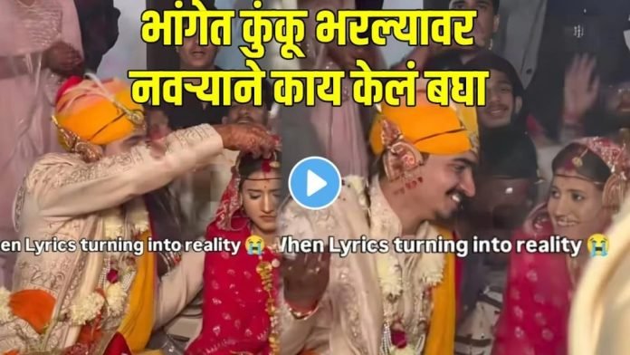 अभिनेता अक्षय कुमारचा ‘पॅडमॅन’ चित्रपटातील ‘आज से तेरी’ या गाण्यातील ‘तेरे माथे के कुमकुम को मैं तिलक लगा के घुमूंगा’ ही ओळ तुम्ही ऐकली आहे का? हो… तर आज याच गाण्याच्या ओळीचे प्रात्यक्षिक एका लग्नात बघायला मिळाले आहे. जोडप्याच्या लग्नाचे विधी सुरू असतात. याचदरम्यान नवरा नवरीच्या भांगेत कुंकू भरत असतो. कुंकू भरल्यानंतर तो अगदी प्रेमाने भांगेतील कुंकू आपल्या बोटावर घेऊन स्वतःच्या कपाळावर लावताना दिसतो.एवढंच नाही, तर ही प्रेमळ कृती करताना नवरा त्या गाण्याची ओळसुद्धा गात असतो, ज्यामुळे नवरीला खूप आनंद झाल्याचे तिच्या चेहऱ्यावर दिसून येत असते. प्रेम कसे व्यक्त करायचे याबद्दल अनेकांना कल्पना नसते. काही जण गुलाब देणे, गुडघ्यावर बसून प्रपोज करणे यांसारख्या युक्त्यांचा वापर करतात. पण, खरे प्रेम करणारी मंडळी व्हायरल व्हिडीओप्रमाणे असे काहीतरी प्रेमळ क्षण जोडीदाराच्या आयुष्यात घेऊन येतात. नवरा-नवरीचा व्हायरल व्हिडीओ एकदा तुम्हीसुद्धा बघा…